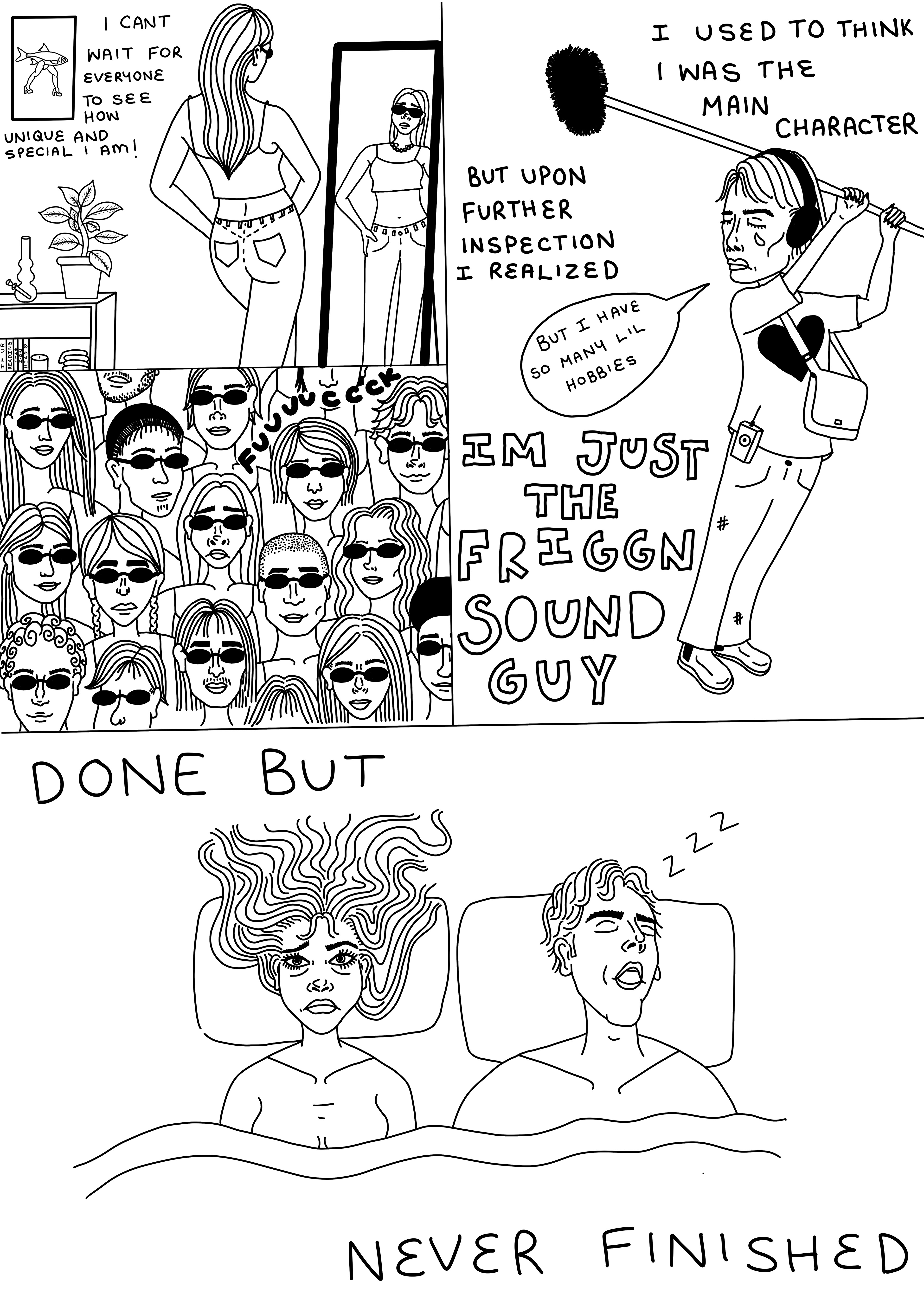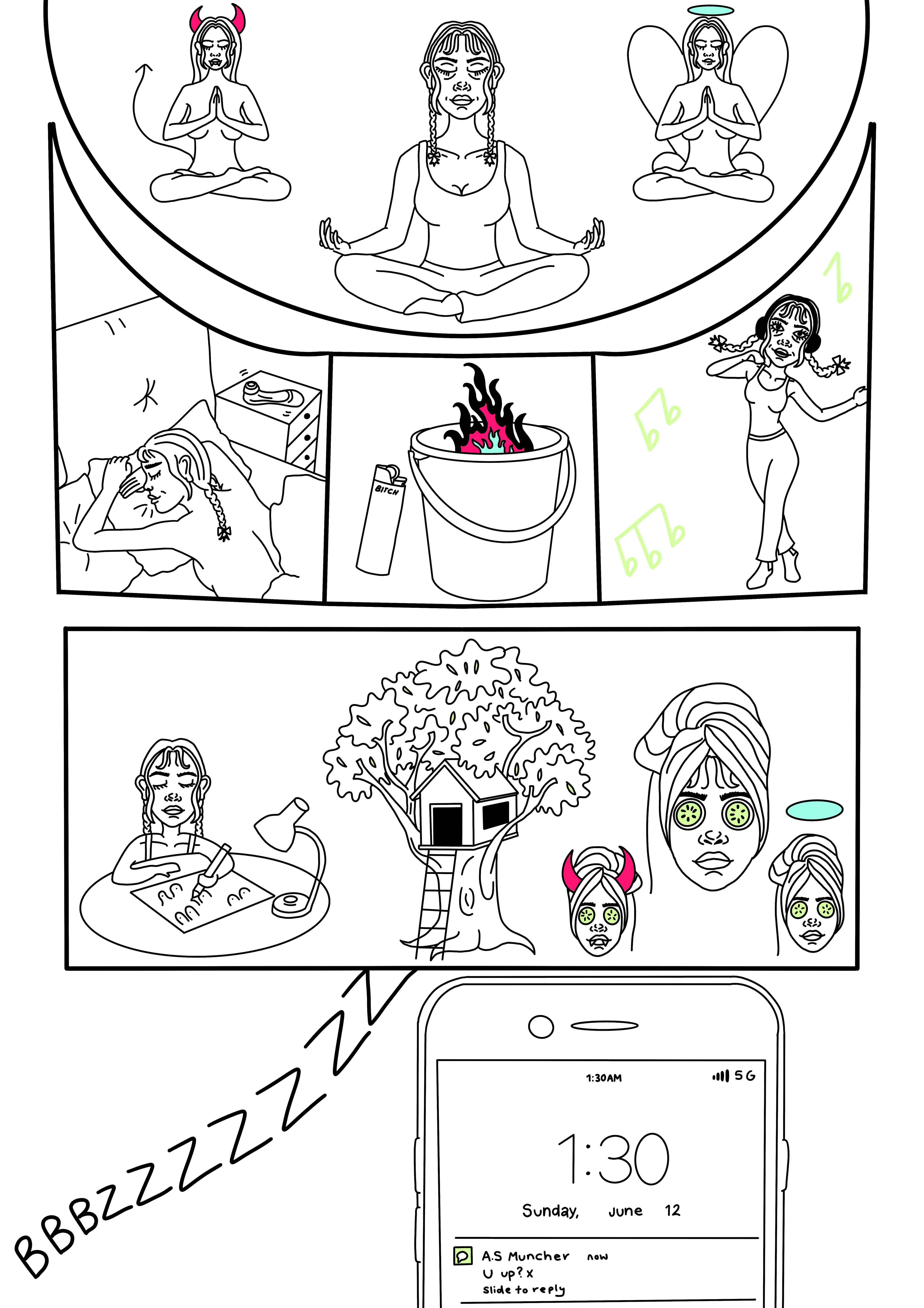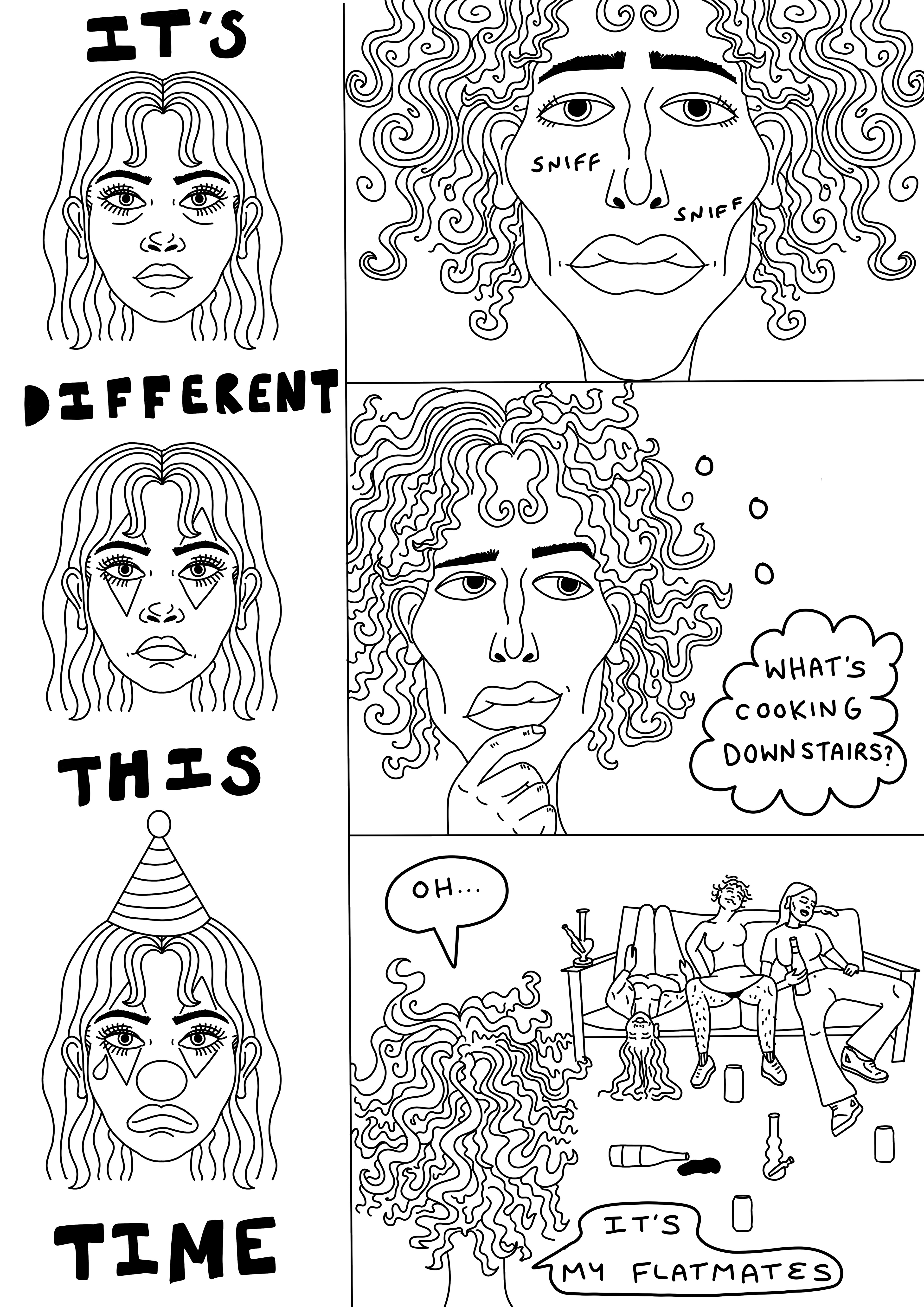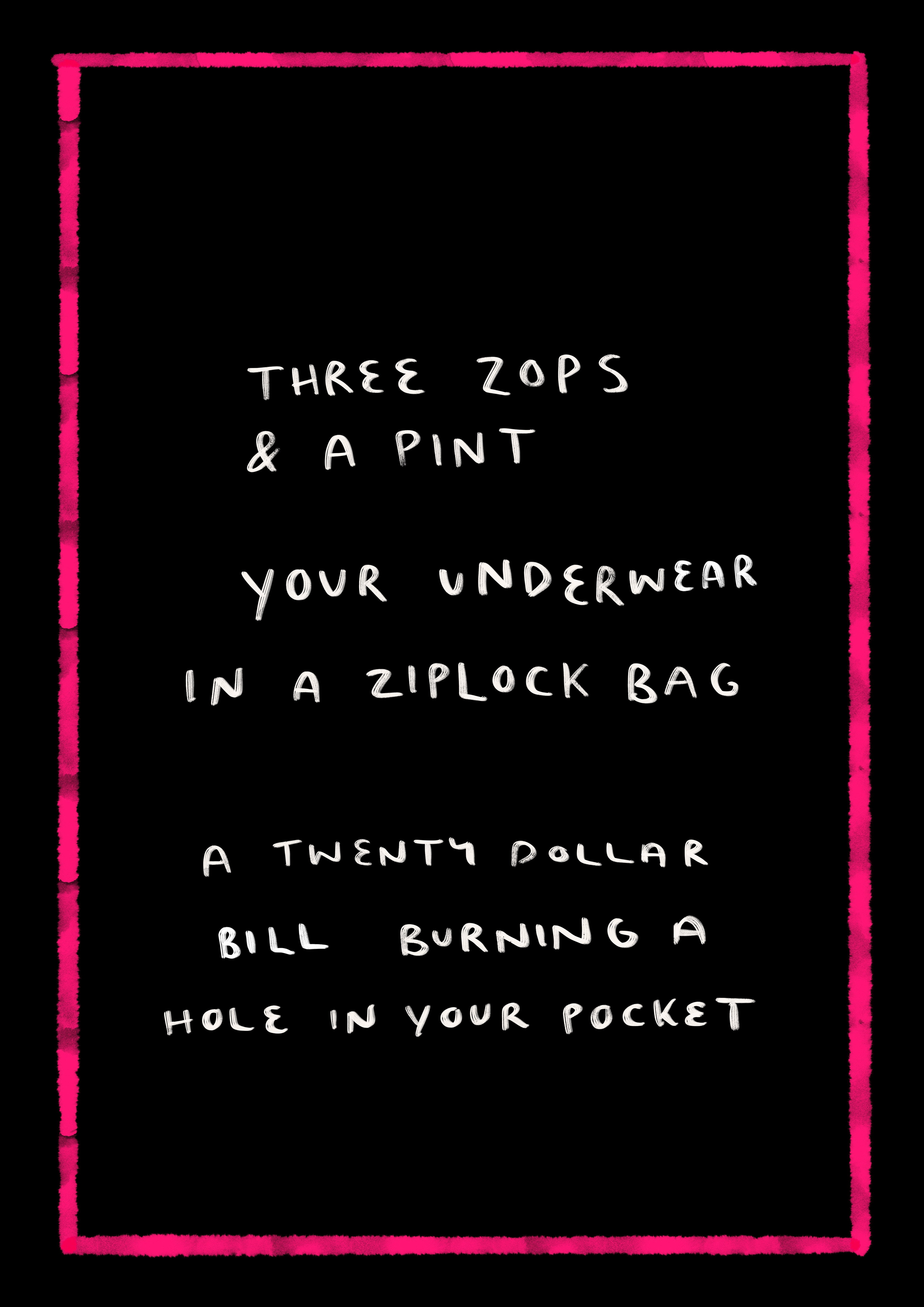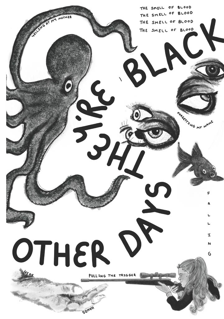Piggy Tits is a self-published zine series comprising short stories, visual poetry, comics, and prints. Titles such as Piggy Tits, Piggy Tits, Bitch, and Piggy Tits Learns a Lesson showcase my exploration of sexuality, grief, depictions of abuse, modern friendships and girlhood.